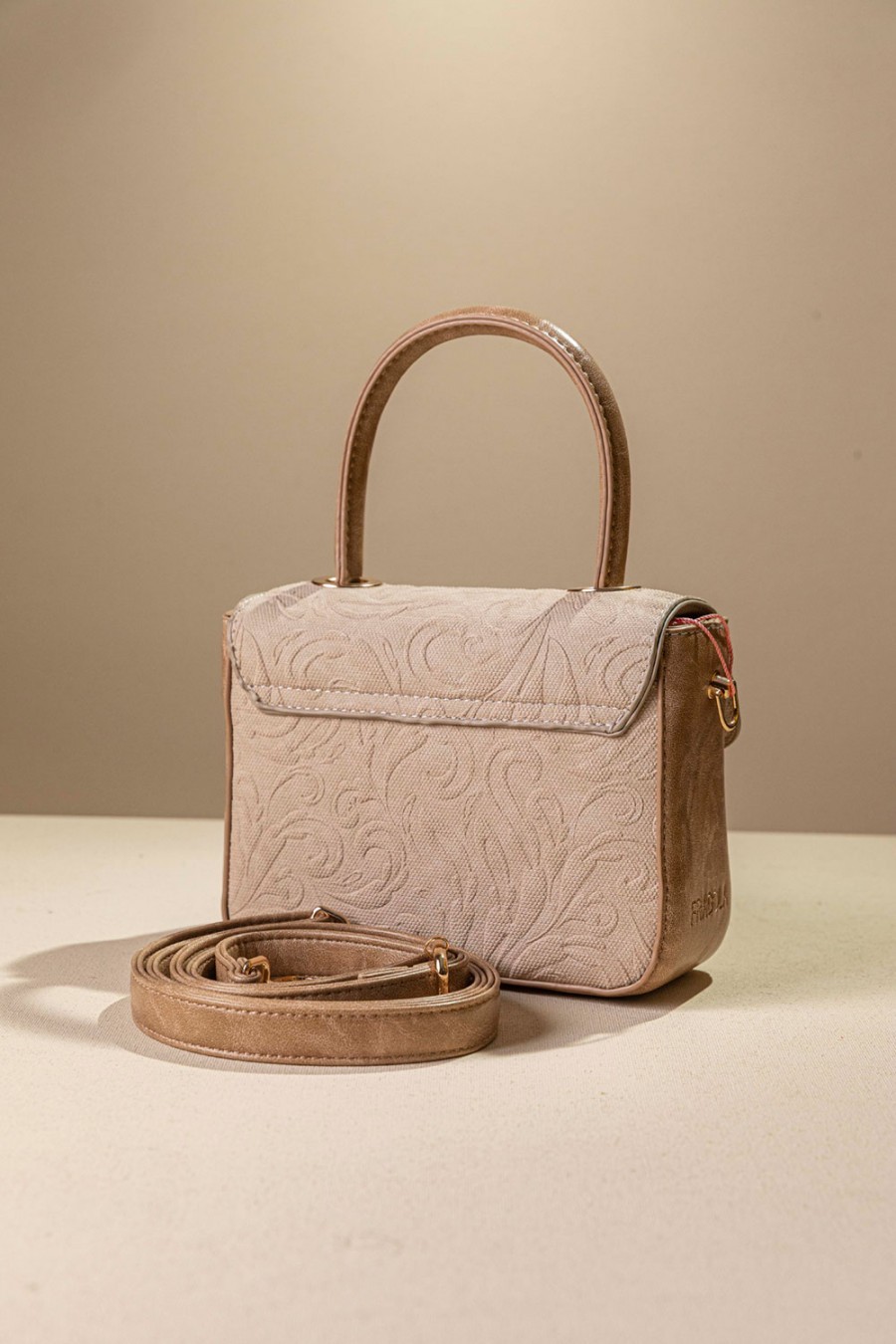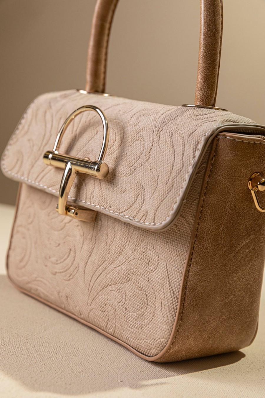- Τσάντα υφασμάτινη με ανάγλυφη υφή και λεπτομέρειες συνθετικού δέρματος