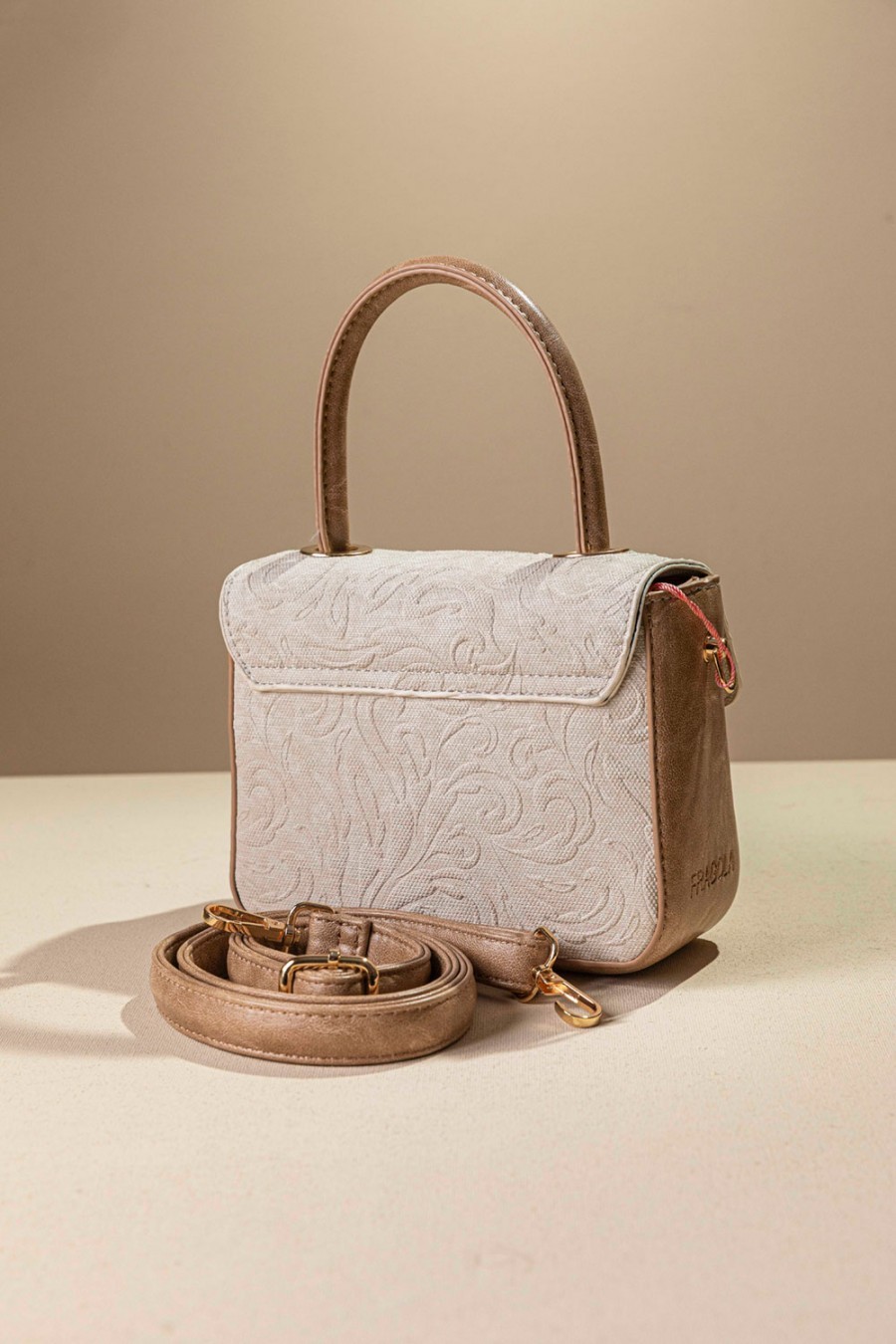 - Τσάντα υφασμάτινη με ανάγλυφη υφή και λεπτομέρειες συνθετικού δέρματος