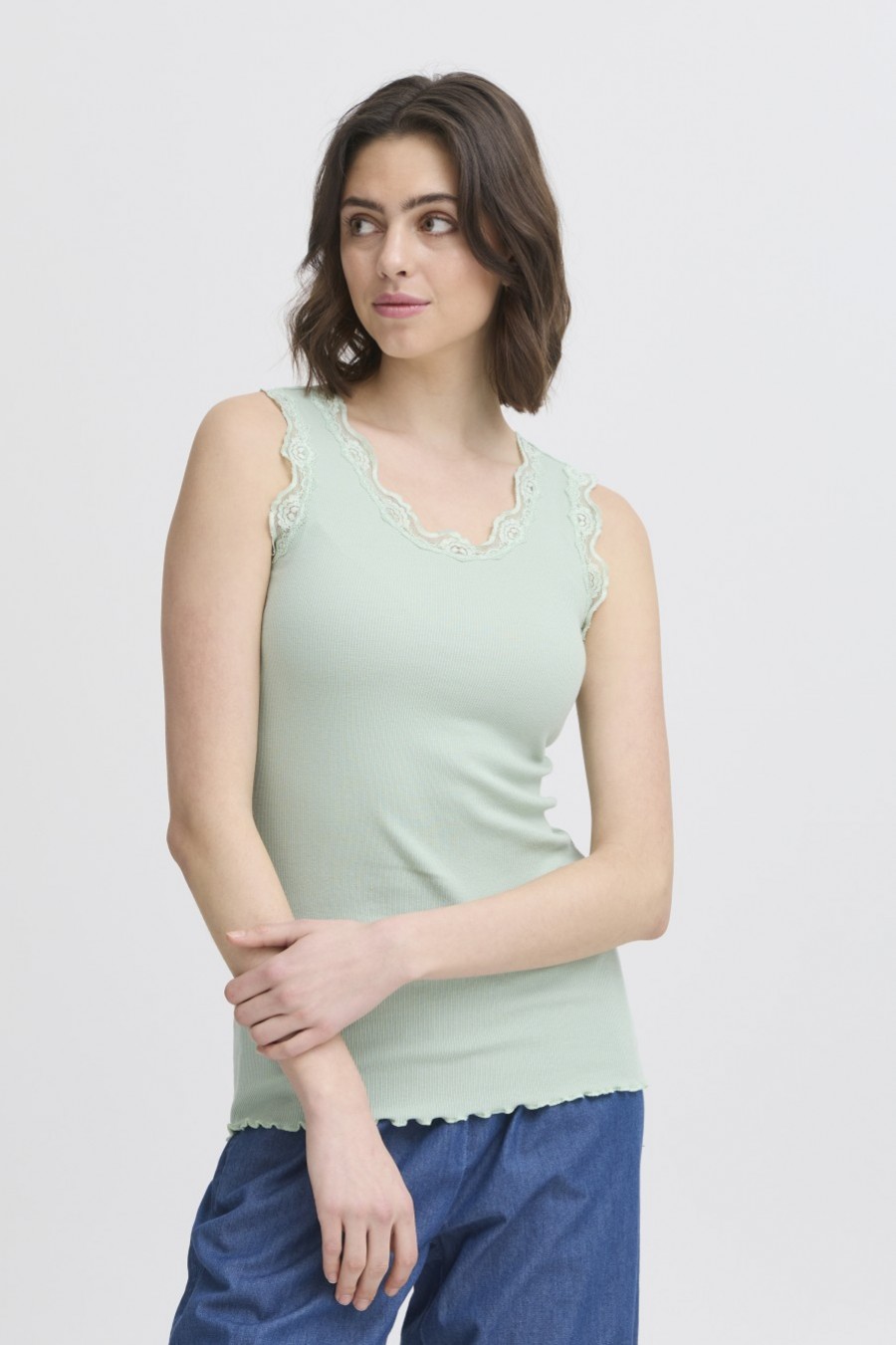 - Τοπ αμάνικο με δαντέλα