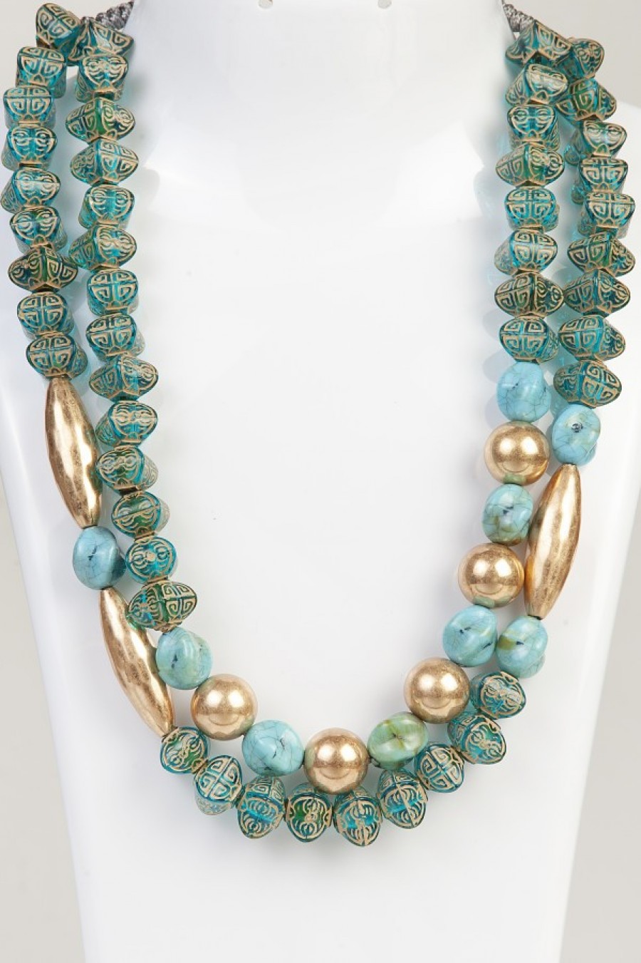 - Κολιέ χειροποίητο δίσειρο απο ρητίνη με σκαλιστά στοιχεία